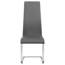 Elevate your dining area with the Anges 5-piece dining set. The contemporary white high gloss finished table features a chrome base for added shine. Complete the ensemble with our iconic Breuer-style chairs, showcasing an ergonomic curved backrest and foam-filled leatherette for ultimate comfort. The U-shaped chrome frame elegantly complements the waterfall edge seat. Available in a range of colors, this set seamlessly merges modern design with unmatched comfort, ensuring every meal is a stylish and comfortable affair. Redefine your dining experience today.