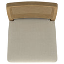 This dining chair combines modern comfort with organic charm, featuring a handwoven cane backrest crafted in Indonesia for a natural, textured appeal. The solid Asian hardwood frame provides durability and a warm aesthetic, while a beige linen-like upholstered cushion enhances its cozy style. Pirelli webbed seat construction ensures both comfort and lasting support. Reinforced with a sleek metal stretcher bar, this chair balances beauty and functionality.