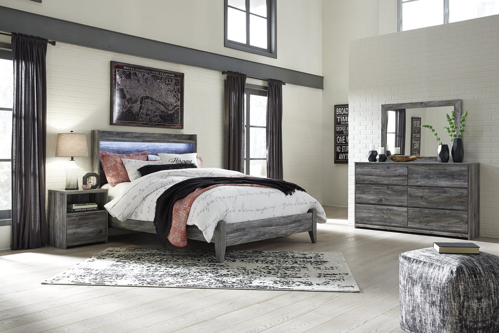 Drift off in the beachy style of this bedroom set. Its driftwood-inspired smoky finish gives a rustic look that's perfect for your island oasis. Love to read in bed? You’re sure to find the cool LED lighting on the headboard such a bright idea. A multitude of storage drawers also come in mighty handy.