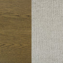 Complete your dining ensemble with this set of two modern side chairs. Offering inviting ambiance to your kitchen or dining room, the pair features a neutral look with a brown oak wood grain finish. Light tan fabric upholstery adds a touch of contrast and airy ambiance. Foam cushions complement with excellent comfort, offering welcoming flair to a comfortable and inviting silhouette. Each chair features a wooden base design with tapering legs for a strong presentation at your dining table.