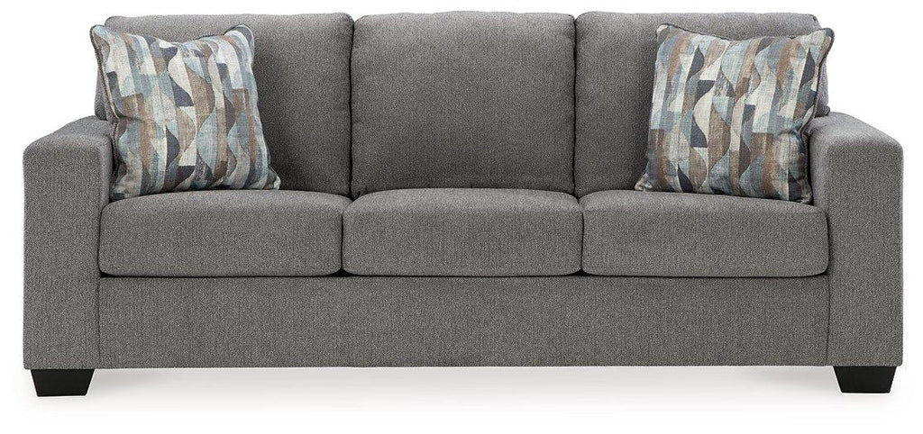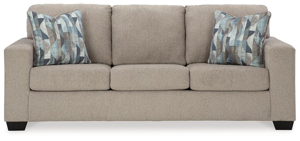 You’re in for a neat treat with this sofa sleeper. Its comfy seats are covered in soft, textural upholstery, and the wide track arms are eager to support your quest for total relaxation. Distressed abstract toss pillows bring a fresh breath of contemporary style while accentuating the sofa's color. The pullout queen memory foam mattress is an added comfort for overnight guests.