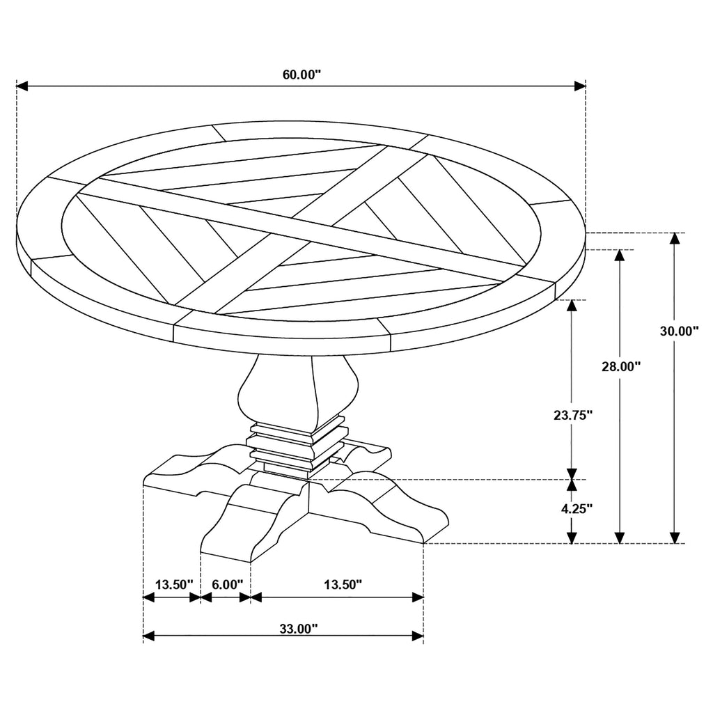 Transform your dining space with the perfect blend of timeless elegance and modern comfort. This dining set showcases a stately rectangular table with a double pedestal trestle base, evoking romantic charm and artisanal craftsmanship. The antique black finish lends a dramatic, yet versatile touch to any dining room. Paired with beautifully tufted dining chairs, the set brings a soft, inviting aesthetic, with plush cushioning and a graceful wingback silhouette. Designed for hosting family dinners or special gatherings, the table expands easily with a removable leaf, ensuring ample space for cherished guests. This dining set combines refined detail and functional versatility, creating a warm and welcoming space for every meal. Key Features: • Rectangular dining table with a bold double pedestal trestle base adds a touch of timeless charm • Antique black finish adds rich drama and refinement to your dining room décor • Decorative plank-style tabletop includes a removable 16-inch extension leaf for added versatility • Beige fabric upholstered tufted dining chairs with a classic wingback silhouette provide both comfort and style • Nailhead trim and soft upholstery with button tufting on the chairs bring an elegant finishing touch