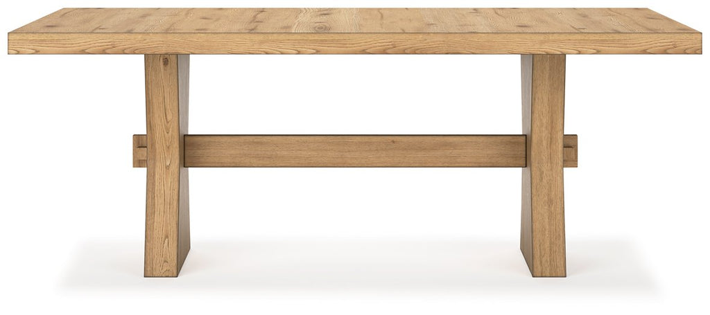 This dining table expertly refines the raw beauty of wood, bringing a rustic vibe to urban contemporary design. It creates an organically beautiful feel in your dining room—an extra-thick tabletop spotlights the unique, natural details of the wood. And the stunning simplicity of the materials allows you to seamlessly coordinate this table with your existing decor.