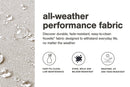 This outdoor package recalls the aesthetics of nature to bring an inviting, high-style feel to your patio or lanai. Its Nuvella+™ performance fabric is made with enhanced UV resistance, so the chic green hue stays brighter for longer. Worried about the weather? Don’t sweat it—this set's durable design is made to withstand the elements from season to season.