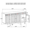 Transform your dining area with this exquisite dining set, featuring a spacious dining table, handcrafted dining chairs, and a beautifully designed sideboard cabinet. The table, made from solid wood, engineered wood, and oak veneer, offers a smooth rectangular top with an 18-inch extension leaf, providing ample space for up to 8 guests. Each dining chair is crafted with a natural wood frame, hand-woven radio weave cane backrest, and a foam seat cushion upholstered in beige fabric, ensuring both style and comfort. The standout of the set, the matching buffet, features ample storage with three spacious drawers and three cabinet compartments behind four doors, perfect for organizing dinnerware, linens, or other essentials. With its cohesive blend of craftsmanship, durability, and natural beauty, this dining set is perfect for creating a welcoming and stylish space for any occasion.