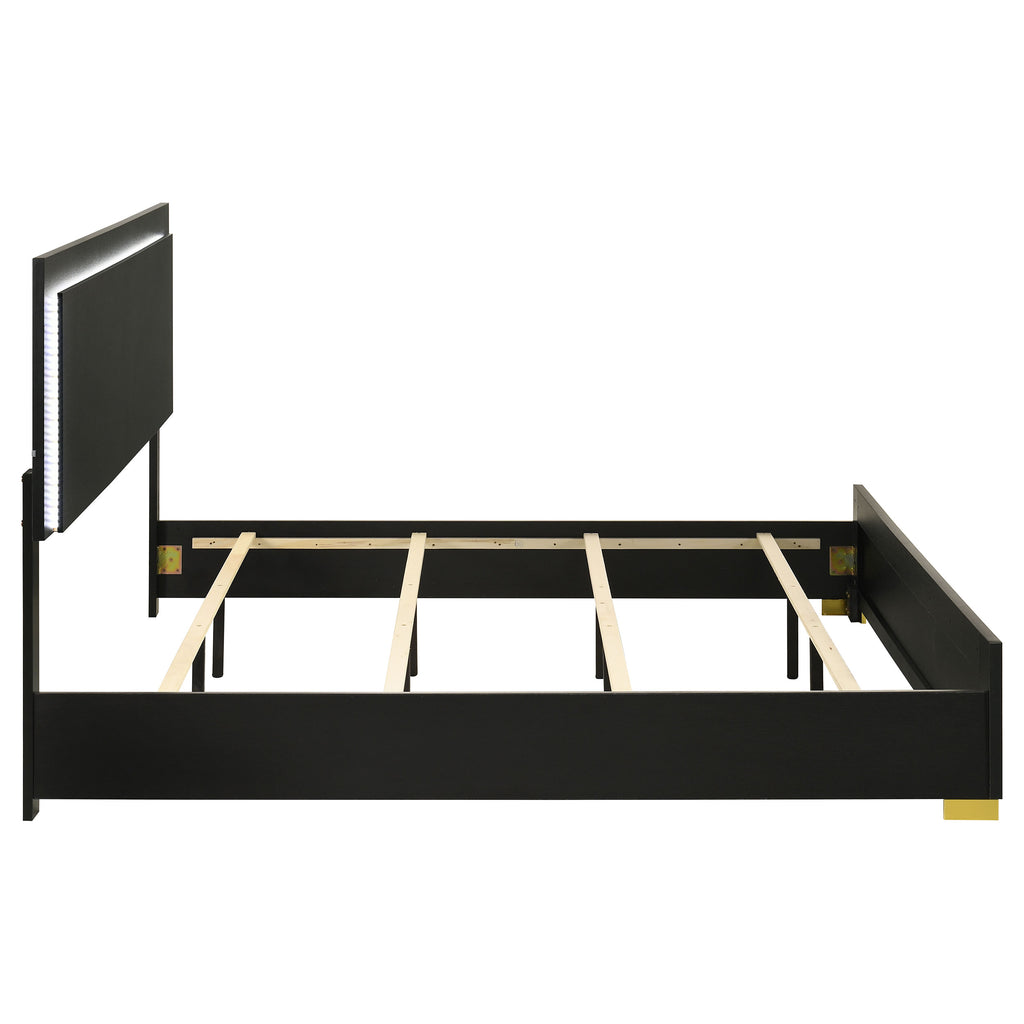 Explore the possibilities of modern features that render this chic bed a haven for relaxation and a comfy place to sleep and lounge. A stylish yet minimalist design feature is perfect for anchoring your contemporary bedroom. Assembled of wood products and melamine laminate, it offers updated and sturdy construction. Ethereal energy-efficient lighting frames its tall headboard, operated with a touch mechanism through headboard-mounted buttons. Gleaming gold metal finish feet are petite yet noticeable. Key Features: • Discover the modern conveniences that transform this chic bed into a sanctuary of relaxation and a cozy spot for both sleep and lounging • Elevate your contemporary bedroom with its stylish yet minimalist design, serving as a striking focal point • Built from wood products and melamine laminate, this bed boasts durable and contemporary construction • Enjoy the ethereal ambiance created by energy-efficient lighting framing its tall headboard, easily controlled through headboard-mounted touch buttons • Notice the elegant touch of gleaming gold metal finish feet, adding a subtle yet distinctive touch to this stylish bed
