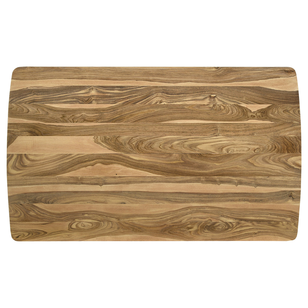 With a hint of ranch inspiration, the design of this five-piece counter height dining set is a brilliant choice for an easy, casual living space. Indulge in a calm vibe with a set anchored by a natural finish sheesham table featuring a spacious rectangular top and tapered, rounded legs. A dark apron with geometric design detail adds an exotic effect. Mid-Century Modern influence adds to four comfortable counter stools with scoop seats and a thick back, both with horizontally channeled leather upholstery. Metal framing features iconic retro slender rounded, splayed legs. Key Features: • Natural finish sheesham table with spacious rectangular top and tapered, rounded legs, dark apron with geometric design detail for an exotic effect • Four comfortable counter stools with scoop seats and thick back, both with horizontally channeled leather upholstery, metal framing with iconic retro slender rounded, splayed legs • Ranch-inspired design perfect for an easy, casual living space • Mid-Century Modern influence adds to the overall look • Create a calm vibe with this five-piece counter height dining set