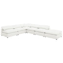 Create the perfect configuration for your modular sectional with a modern armless chair. It features neutral water-resistant boucle upholstery for an on-trend look and feel that works in a wide range of living spaces. The armless chair connects with additional chairs or corners, creating a custom sectional setup in your living room. Foam cushions pair with feather blend for exceptional comfort and a plush feel you'll love when lounging. A loose pillow back completes the look.