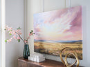 Staggerlingly beautiful. Depicting a luminous landscape, this wall art captures a spectacular sky in soothing shades of pink, blue and yellow as sunlight beams on a field of florals. Hand painted embellishments make the canvas a gorgeous addition to an office, bedroom or above an entryway table.