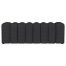 Introduce glam texture and dimension with a decorative upholstered bench. This modern creation features an undulating silhouette without arms or a back, offering sleek style and seating. Perfect for a sophisticated foyer or living room, it adds a pop of color and rich dimensionality with subtle variation in textured fabric. It makes a chic replacement for a coffee table in a linear sitting area, complete with foam cushioning that's firm enough to host a serving tray. Minimal feet create a seamless look and feel in any setting.