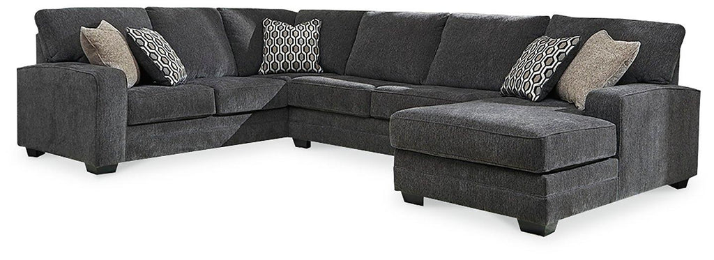Talk about easy street. This effortlessly chic 3-piece sectional with ottoman puts you at the intersection of cool and comfortable. Ultra-deep seats are custom made for afternoon naps and movie night marathons. So plush to the touch, the slate gray upholstery is beautifully on trend.